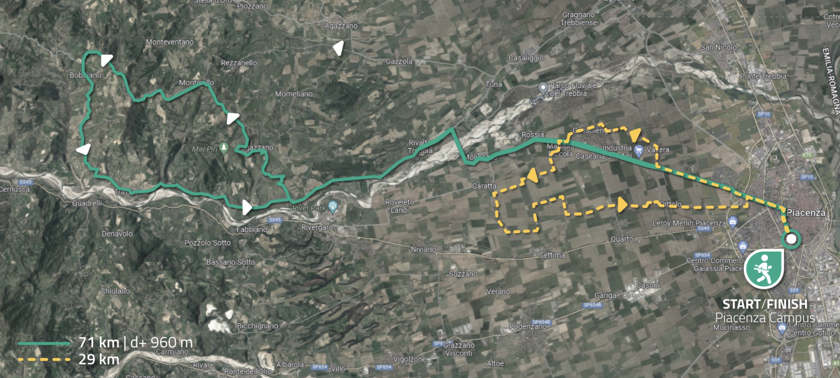 The short, non-competitive route passed through Vallera, Gossolengo, Caratta, and Pittolo, offering a friendly and accessible experience for families and beginners. The longer, competitive route extended along Strada Agazzana, crossed the Ponte di Tuna, and continued through Pigazzano, Monticello, Bobbiano, and Travo, before returning to the city. Both routes highlighted the region’s stunning landscapes, blending urban streets with rolling hills and picturesque villages.